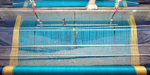 Once we process the warp, we fix this to loom and start weaving process. At this point we also attach zari threads to warp to make zari boarders on Mangalagiri sarees. In general, a weaver can weave a Mangalagiri Saree in 1-2 days. The weaving time may vary based on the saree design.